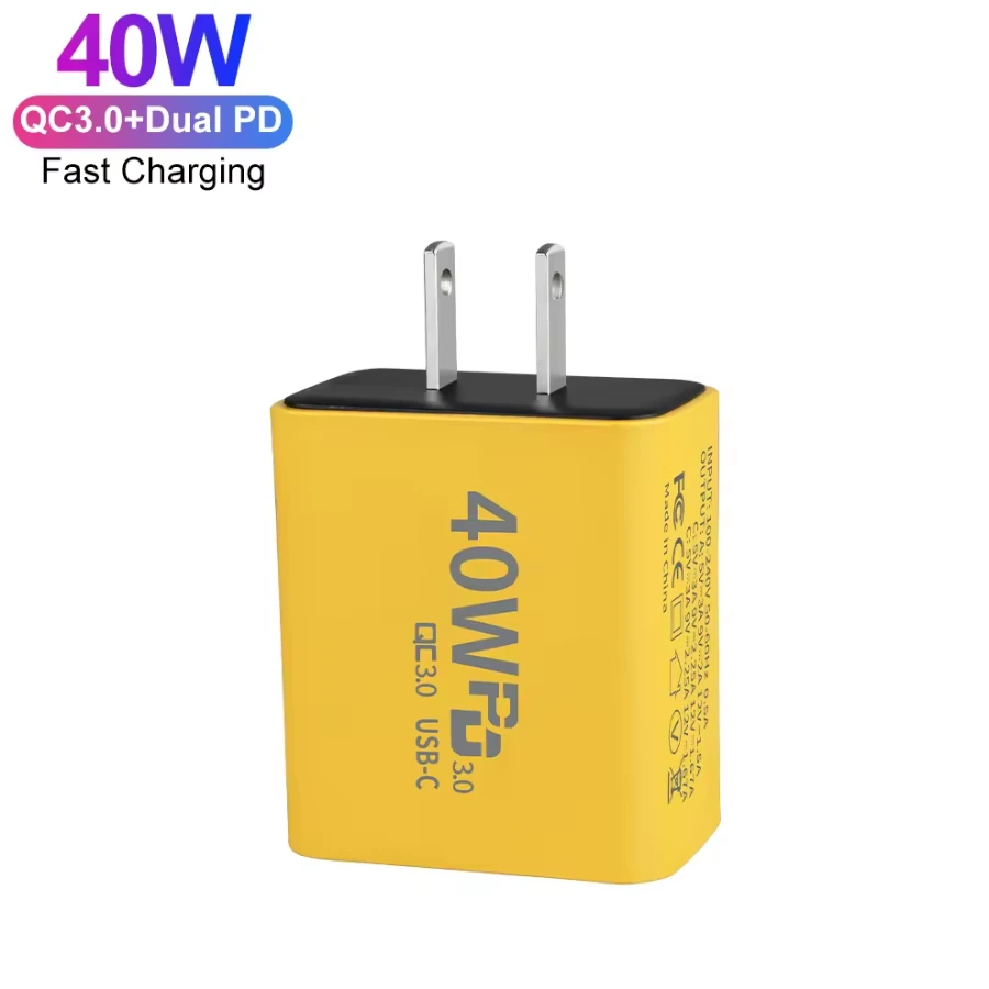 Customized plug 3 Ports 40W USB Fast Charging with Dual PD 20W USB C Ports QC 3.0 Wall Charger
