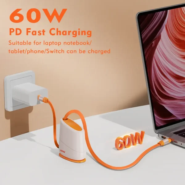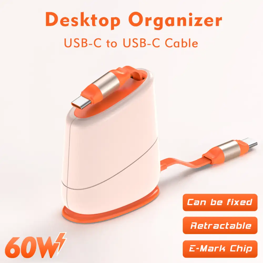 Desktop Retractable PD60W Type C to Type C Fast Charging Data Cord for iPhone 16 Huawei Xiaomi
