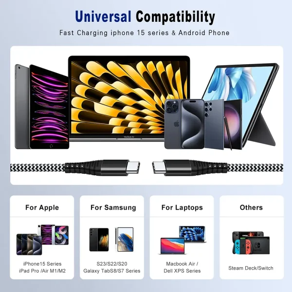 - Faithful Service: We provide high-quality data cable for you to choose from. This C to C cable meets the charging needs of most devices. We provide efficient after-sales service for you to buy it. If you have any questions, please contact us and we will serve you as soon as possible.