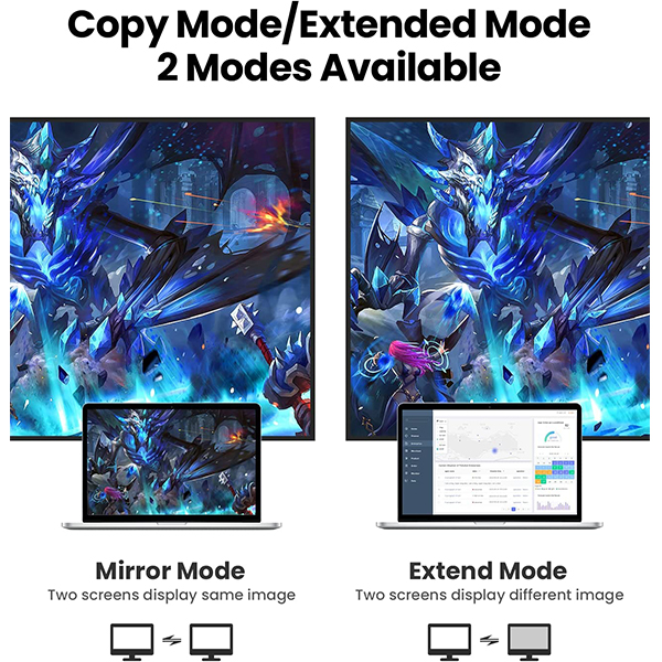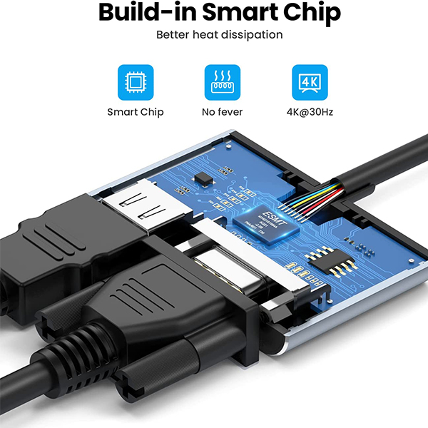 - 1080P VGA & 4K HDMI Output: HDMI port of USB C Monitor Adapter max support 4k*2k@30Hz; VGA display in up to 1080P@60Hz Full HD. When two ports work simultaneously, the maximum resolution of the two is 1920 x 1080P@60Hz. Note: Extend mode, while vga and hdmi work at the same time, two monitors only show the same content.